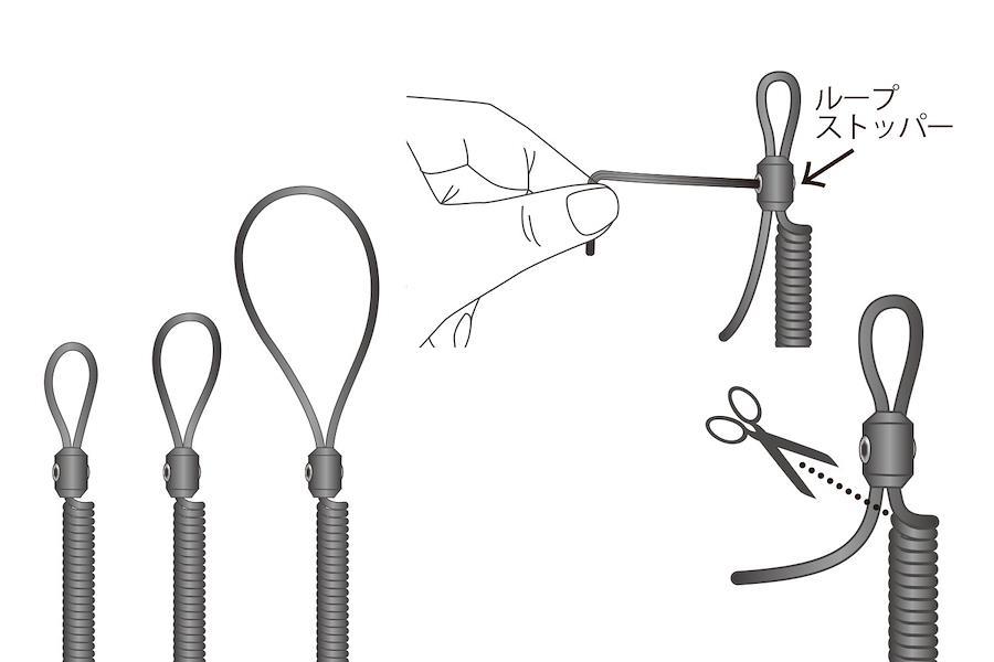 フィッシュグリップやハサミ・小物などに! もしもの脱落にも回収できるように、直接ロープに輪で接続していただくか、 カラビナに通してご使用して下さい。