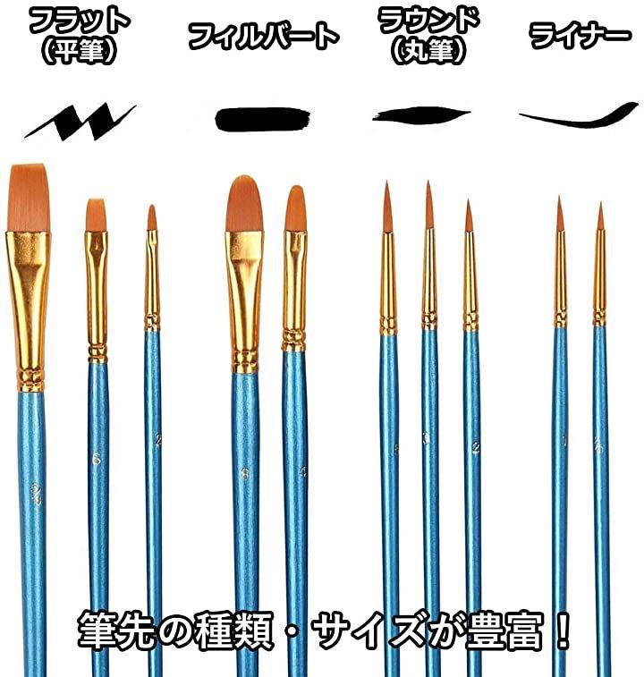 ・描きやすく扱いやすいナイロン素材の筆・ブラシ10本です。