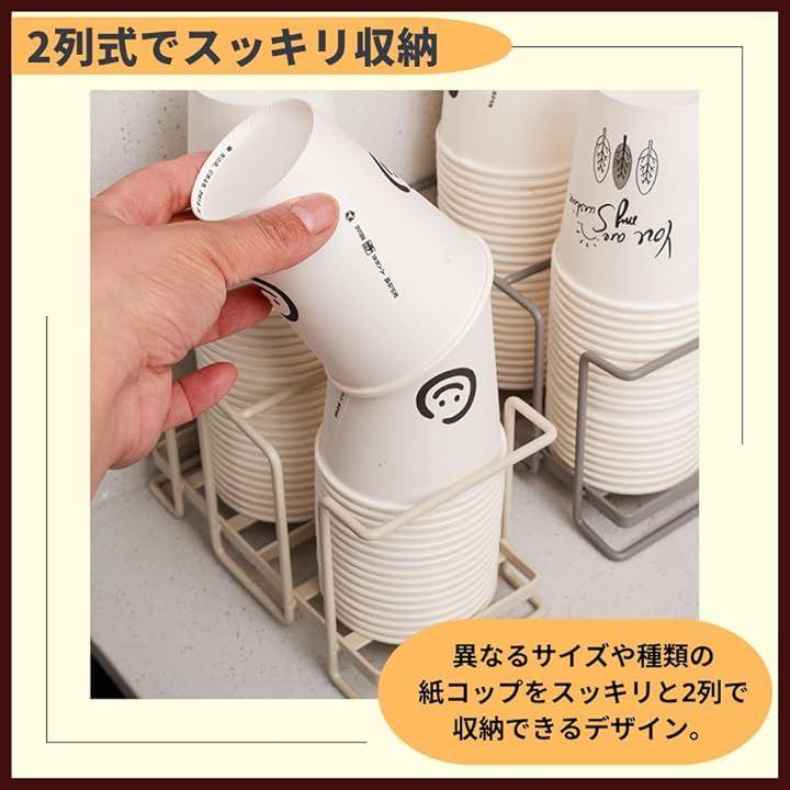 「2列式でスッキリ収納」異なるサイズや種類の紙コップをスッキリと2列で収納できるデザイン。