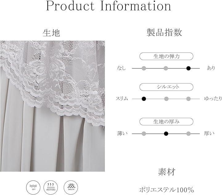 「MIX生地で快適な着心地」 スカート部分には軽やかなシフォン素材を採用しており、さらりとした着心地と女性らしいフワッと広がるシルエットが魅力です。