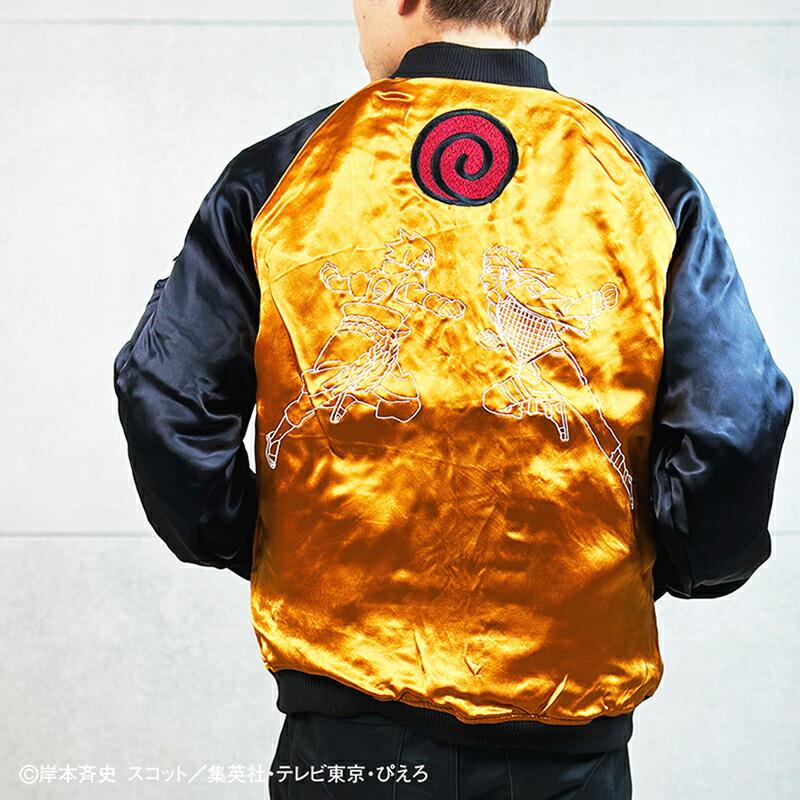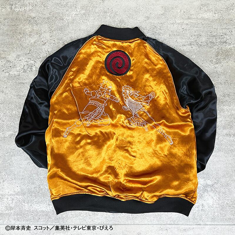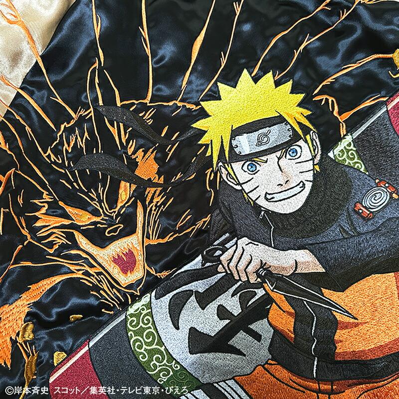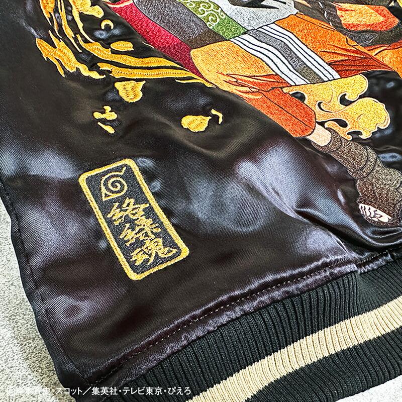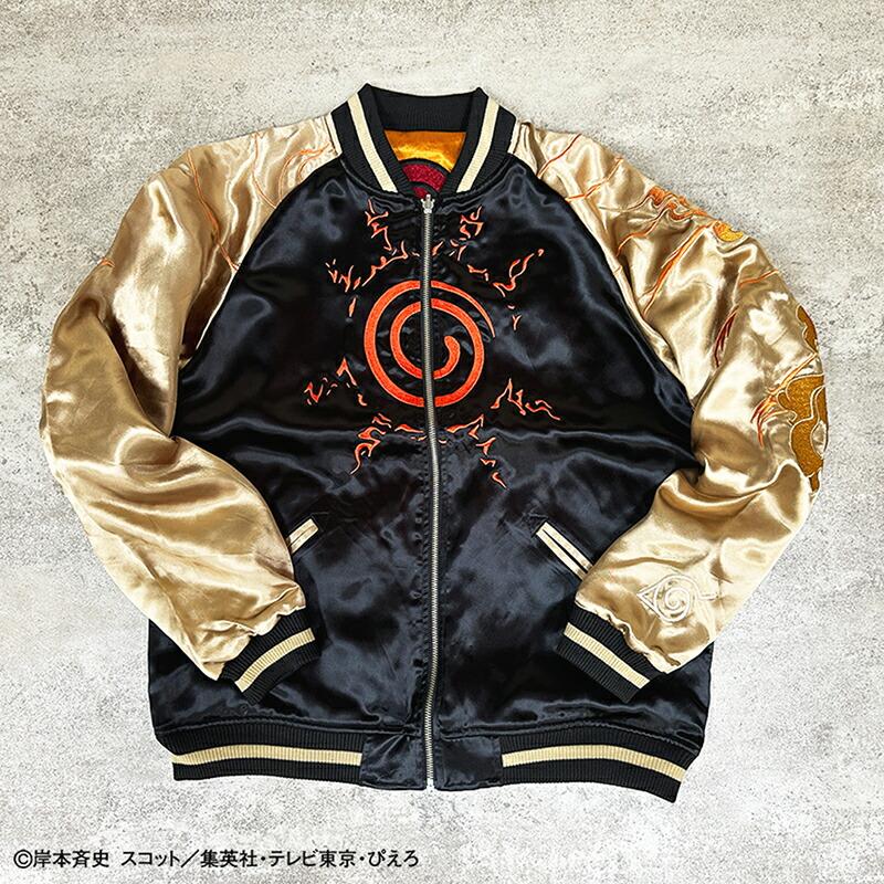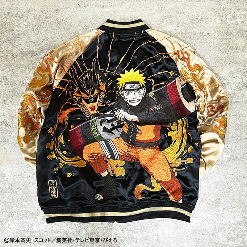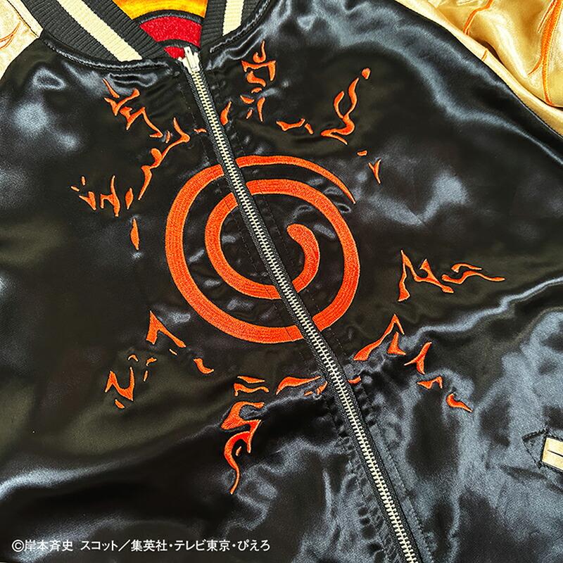 【デザイン】絡繰魂 × NARUTOとのコラボデザインの登場です。うずまきナルト 柄 刺繍 リバ−シブル スカジャンです。遂に世界的大人気テレビアニメ『NARUTO- ナルト- 疾風伝』とのコラボが実現 !!コラボ用描き下ろしイラストを元にした、絡繰魂の真髄ともいえるハイクオリティな刺繍は必見 !!主人公「うずまきナルト」の背景には封印されている「九尾」を刺繍。フロントにはその封印の印をそのまま刺繍し、火影になるために燃えるような志をもつナルトを、全体のデザインを通して表現!!リバーシブル裏はナルトの衣装のカラーリングで配色し、背中にはライバルであり友である「うちはサスケ」とのラストバトルを投影。全てが、あなたの記憶を呼び起こすようなコラボならではのデザインに仕上げました。レーヨンの性質上と加工による糸切れや糸とび,染め傷等が発生致します。それもレーヨンスカジャンの味としてご理解下さい。