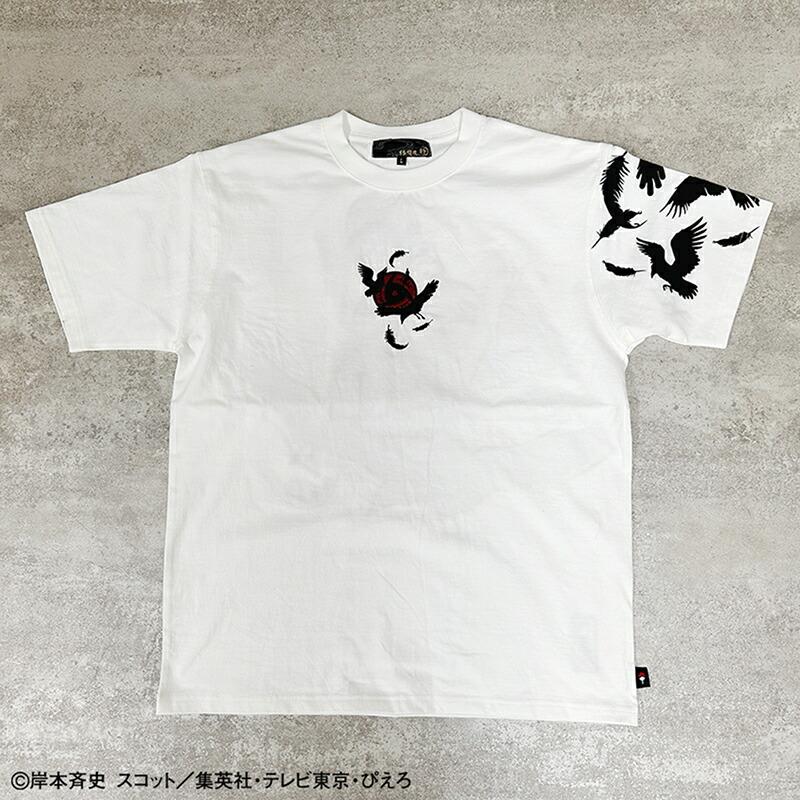 【デザイン】絡繰魂 × NARUTOとのコラボデザインの登場です。うちはイタチ 暁 柄 刺繍 半袖 Tシャツです。遂に世界的大人気テレビアニメ『NARUTO- ナルト- 疾風伝』とのコラボが実現 !!コラボ用描き下ろしイラストを元にした、絡繰魂の真髄ともいえるハイクオリティな刺繍は必見 !!「うちはサスケ」の兄である謎めいた男「うちはイタチ」と、口寄せしたカラス達を刺繍 !!赤い月を背景に佇む姿と「写輪眼」を表現。絡繰魂のロゴ刺繍部分には、うちはの家紋を加えた限定デザイン。全てが、あなたの記憶を呼び起こすようなコラボならではのデザインに仕上げました。