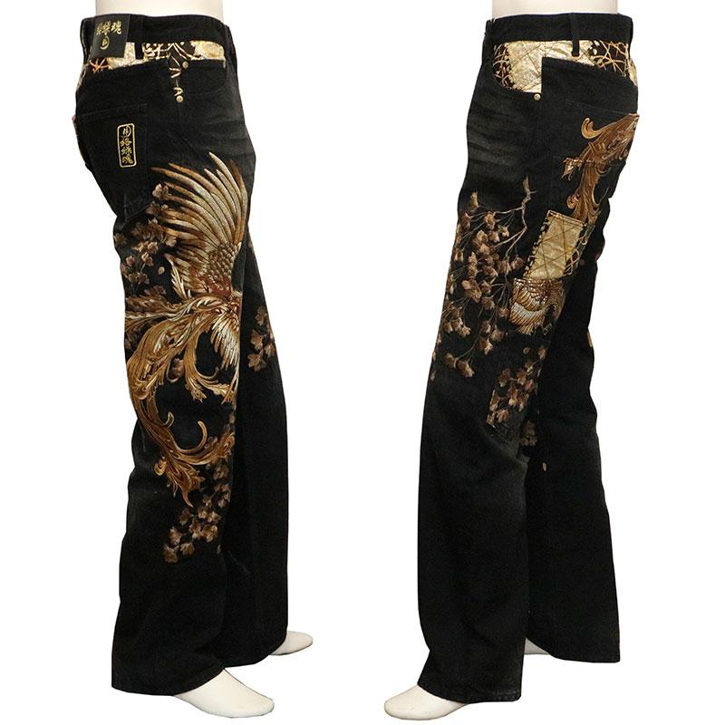 鳳凰 柄 刺繍 5連ポケット 和柄 デニムパンツ
