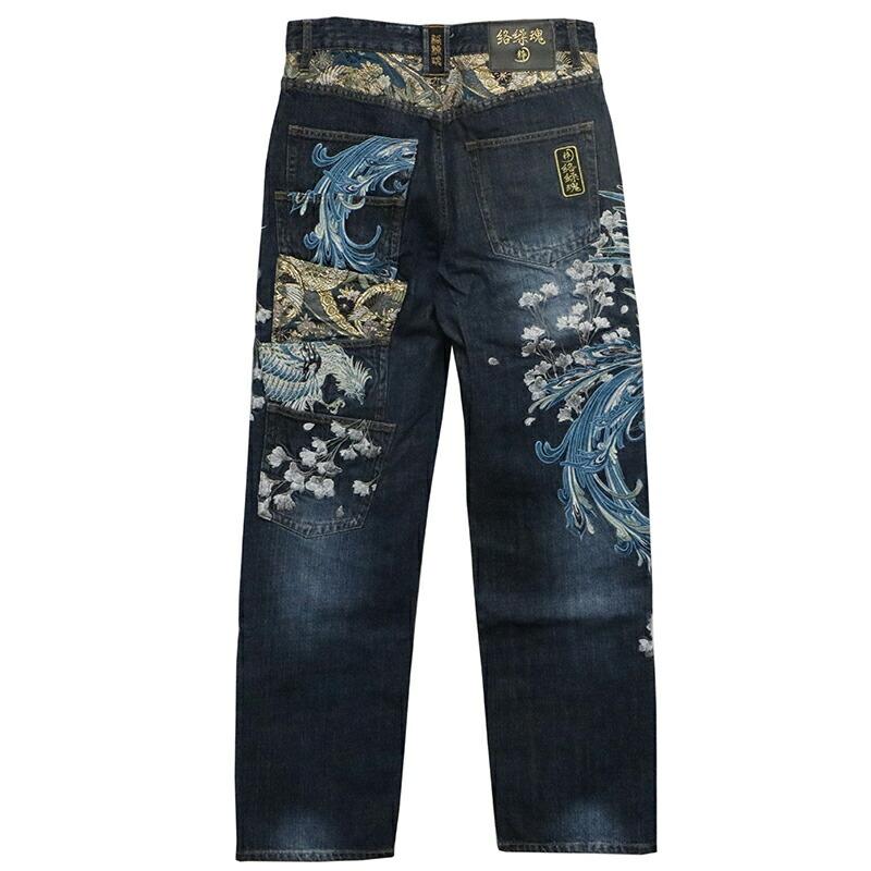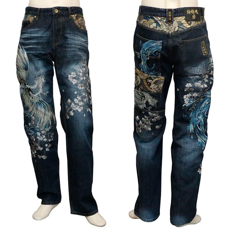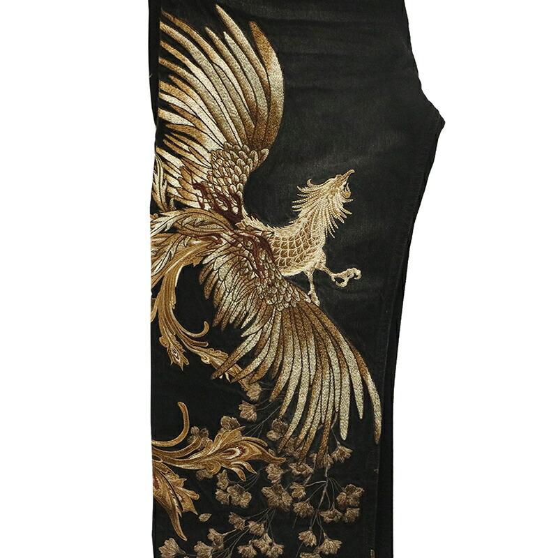 鳳凰 柄 刺繍 5連ポケット 和柄 デニムパンツ