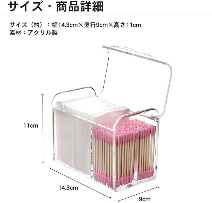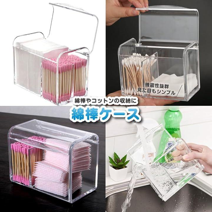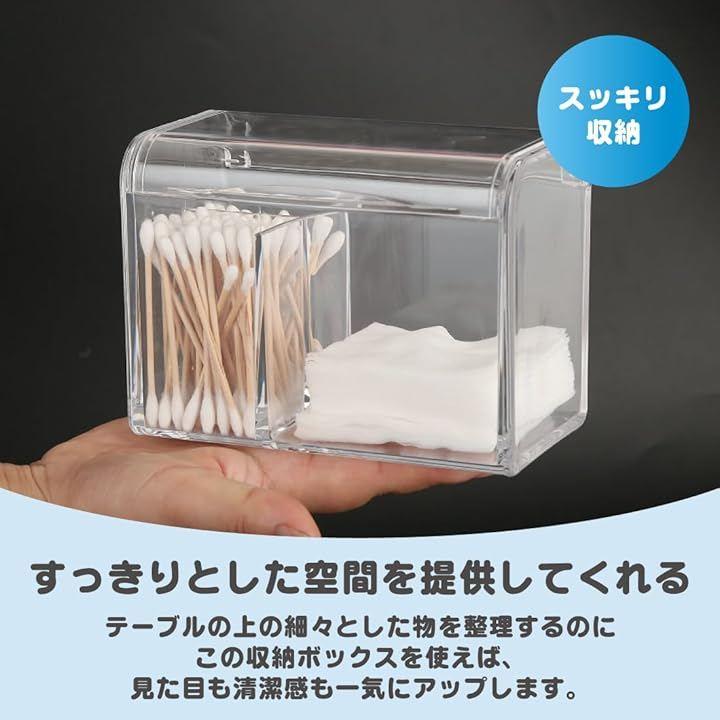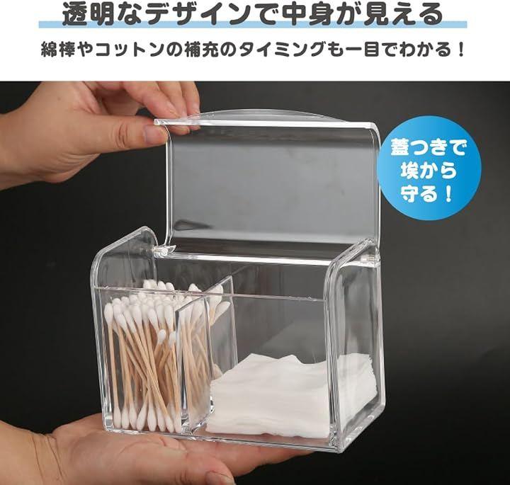 「綿棒やコットンボックス」透明なデザインで中身が一目でわかるため、綿棒やコットンの補充時期も簡単に把握できます。
