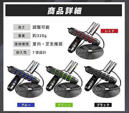 「商品仕様」グリップ付きジャンプロープ2.8m、長さ調整可能、グリップウェイト重量約320g