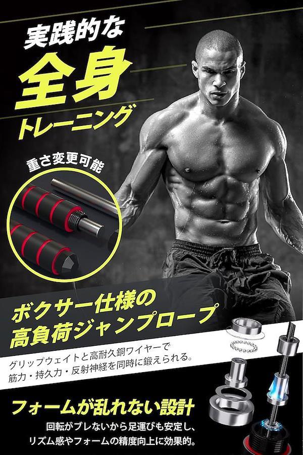 「高負荷グリップと銅ワイヤー構造」グリップにウェイトを装着可能で、ロープには高耐久の銅ワイヤーを採用。