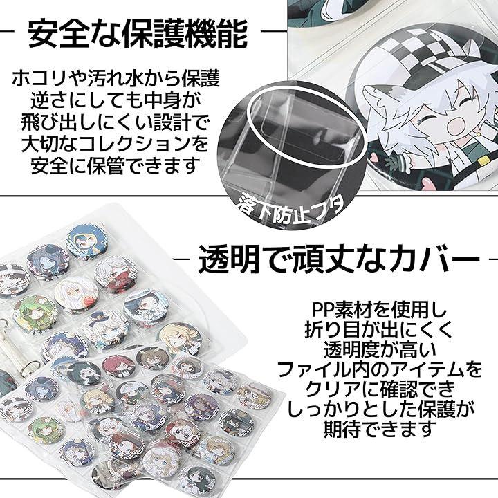 「缶バッジやアクキーをしっかり保護&魅せる」 本商品は、缶バッジ・アクリルキーホルダー・キーチェーンなどのアニメグッズを美しく・安全に保管できる専用収納ファイルです。