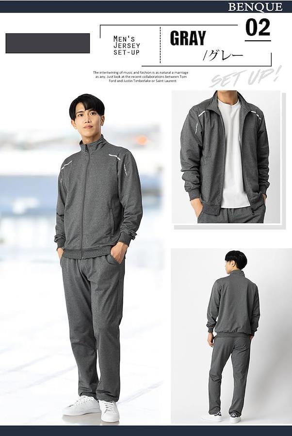 *素材:ポリエステル 95%,ポリウレタン 5% *カラー:ブラック、グレー、ネイビー *サイズ:M,L,XL,2XL トップス 着丈 /胸囲 /肩幅 /袖丈 [M] : 66 / 109 / 44 / 66 [L] : 68 / 114 / 45.5 / 61.5 [XL] :70 / 119 / 47 / 63 [2XL] :72 / 124 / 48.5 / 64.5 ボトムス 総丈 /ウエスト(ゴム仕様) /ヒップ [M] : 97 / 73~ / 106 [L] : 100 / 76~ / 110 [XL] :102 / 79~ / 114 [2XL] :104 / 82~ / 118