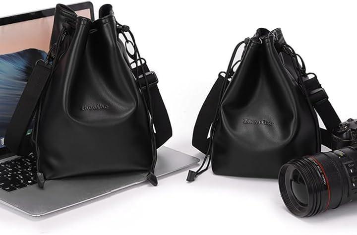 防水素材: 高品質PUレザー製で、大切なカメラ機材を水や汚れから守ります