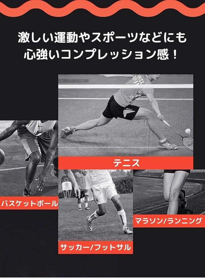 「様々なシーンで活躍」サッカー、フットサル、野球、バドミントン、テニス、バスケットボール、バレーボール、登山、ランニング、自転車、ゴルフ、相撲など、さまざまなスポーツで使用できます。