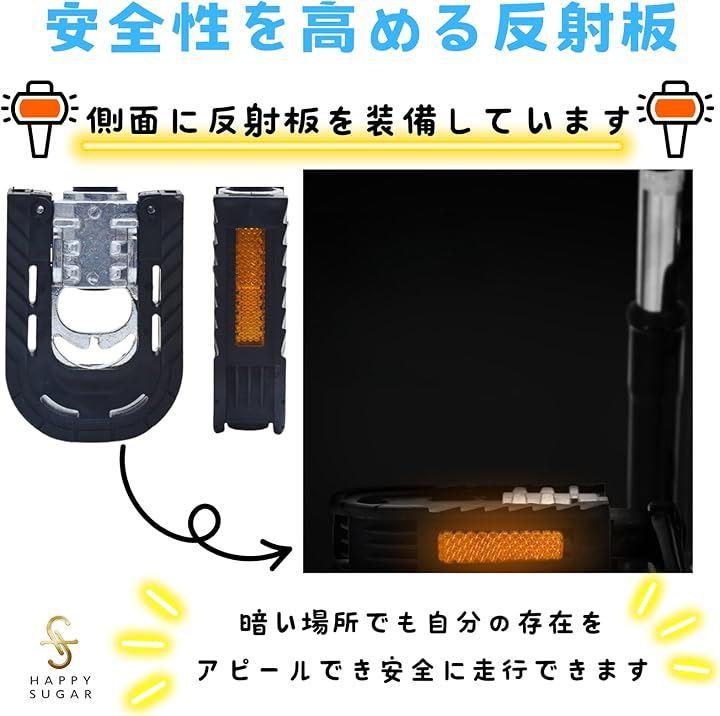 「安全性を高める反射板」夜間走行時の安全性が確保されていない自転車のペダルが多い中、このペダルは側面に反射板を装備しています。