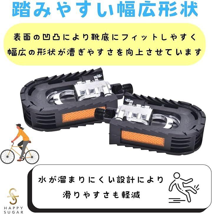 「踏みやすい幅広形状」表面の凹凸により靴底にフィットしやすく、幅広の形状が漕ぎやすさを向上させています。