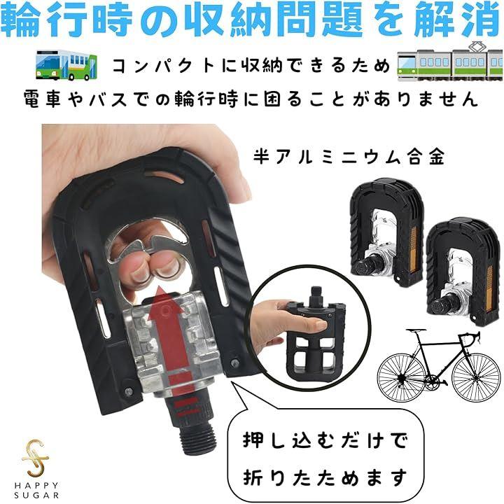 この折りたたみペダルは、コンパクトに収納できるため、電車やバスでの輪行時に困ることがありません。