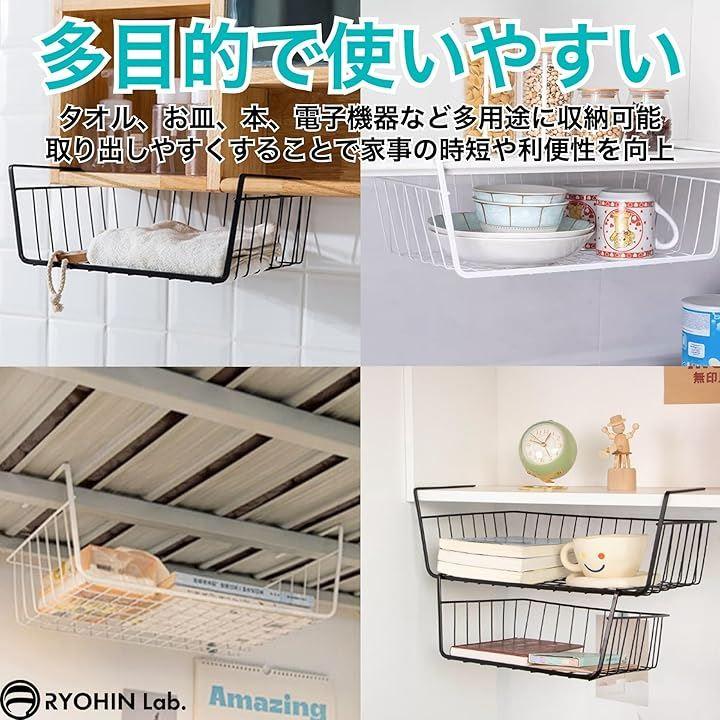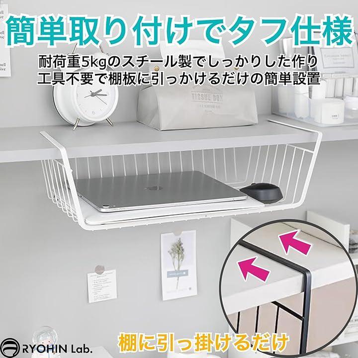 良品ラボ 吊り下げ収納 カゴ ラック ワイド デスク下 キッチン 棚下 小物入れ 省スペース シンプル 整理整頓 工具不要 穴あけ不要 ネジ止め不要 スチール製 2個セット