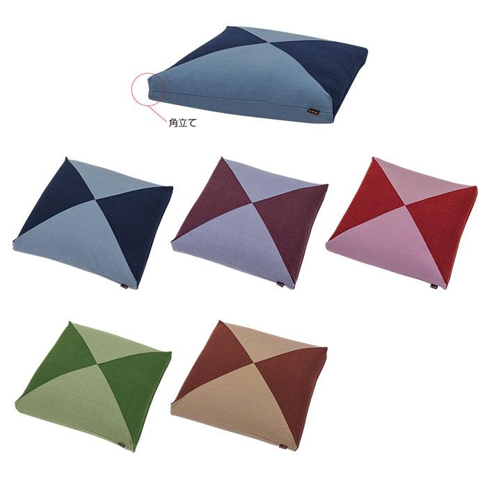 日本古来の色は自然を映し、草花や樹木や空の色を生活に取り込み四季とともにありました。三角模様のパッチワーク柄は、子供の頃に遊んだ折り紙やお手玉のような懐かしさを感じる方もいらっしゃることでしょう。同系色の落ち着いた深い色と優しく淡い色の組み合わせは、落ち着いた色ながらどこか心をキュッと掴んで離しません。四隅を立てて縫製することでより立体的なシルエットになりました。和み色の【角立てパッチワーク】は全5種類をご用意しました。異なる太さの糸を使い平織りとなな子織りを組み合わせて織られたブッチャー生地は、交叉する糸の凹凸が染め色に陰影を落とし深みを加えます。しっかり柔らかな手触りが心地よく、織り糸の表情が感じられる素材です。【カバーサイズ】 横45㎝×縦45㎝×厚み5㎝(四方縫い)【生地素材】 綿(ブッチャー)100%この商品は中わたとセットです(カバーはファスナー加工)。またカートの購入可能数より多い数をご希望の場合はご相談ください。