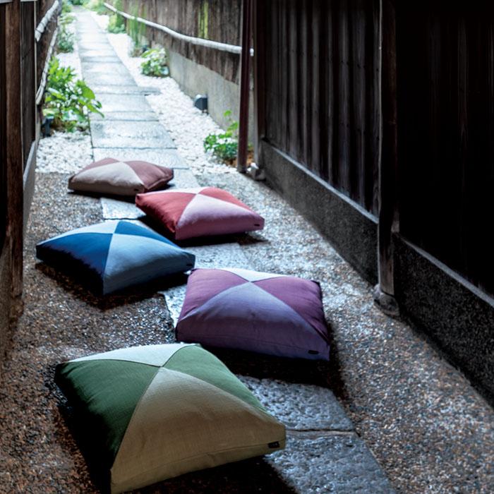日本古来の色は自然を映し、草花や樹木や空の色を生活に取り込み四季とともにありました。三角模様のパッチワーク柄は、子供の頃に遊んだ折り紙やお手玉のような懐かしさを感じる方もいらっしゃることでしょう。同系色の落ち着いた深い色と優しく淡い色の組み合わせは、落ち着いた色ながらどこか心をキュッと掴んで離しません。四隅を立てて縫製することでより立体的なシルエットになりました。和み色の【角立てパッチワーク】は全5種類をご用意しました。異なる太さの糸を使い平織りとなな子織りを組み合わせて織られたブッチャー生地は、交叉する糸の凹凸が染め色に陰影を落とし深みを加えます。しっかり柔らかな手触りが心地よく、織り糸の表情が感じられる素材です。【カバーサイズ】 横45㎝×縦45㎝×厚み5㎝(四方縫い)【生地素材】 綿(ブッチャー)100%この商品は中わたとセットです(カバーはファスナー加工)。またカートの購入可能数より多い数をご希望の場合はご相談ください。