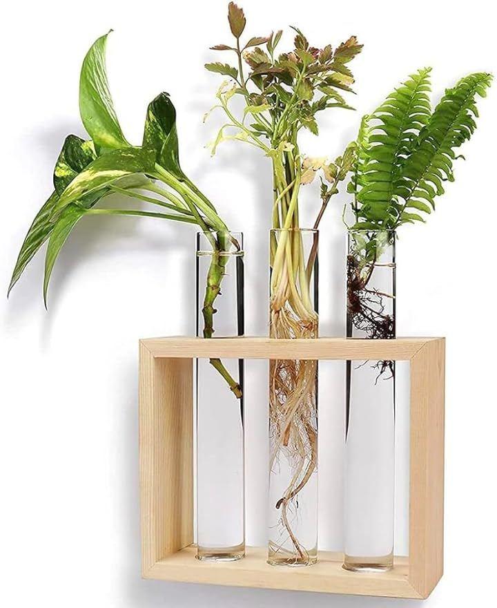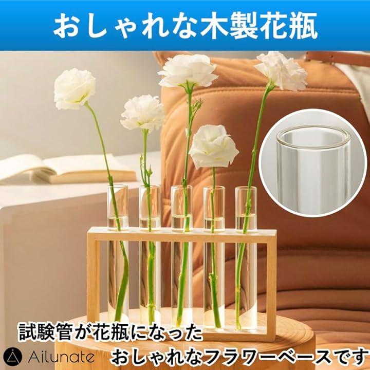 「おしゃれな木製花瓶」試験管が花瓶になったおしゃれなフラワーベースです。