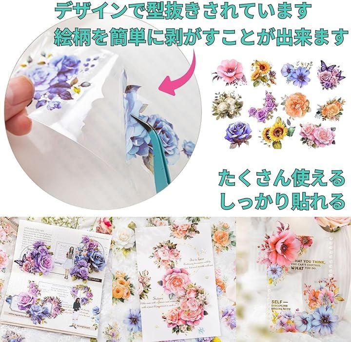 「手帳・アルバムに最適」型抜き加工で、剥がしやすく使い易い。手帳、アルバムのデコレーション、ジャーナル、スクラップブック、ギフト包装、コラージュ、DIYプロジェクト、クラフトなど利用できる文房具に。