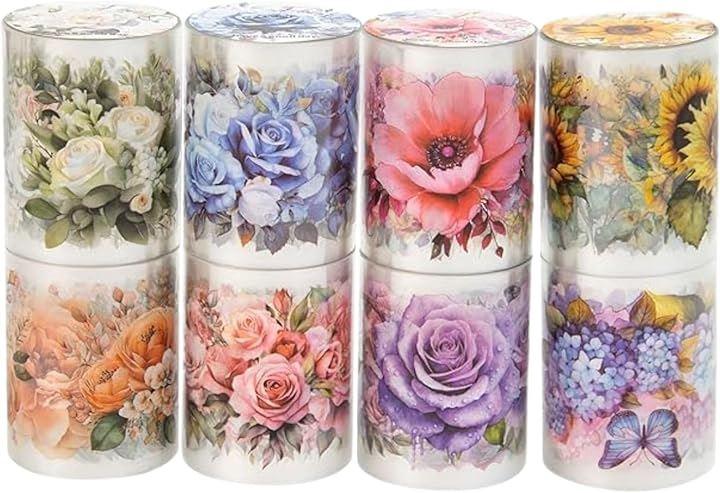 「商品仕様」[花(大)]約50mmxx2m 1ループ約350mm 1セット8種 1種8デザイン [花(小)]約50mmxx2m 1ループ約380mm 1セット6種 1種10デザイン「バリエーション」[花(大)1セット8巻、2セット16巻、3セット24巻。
