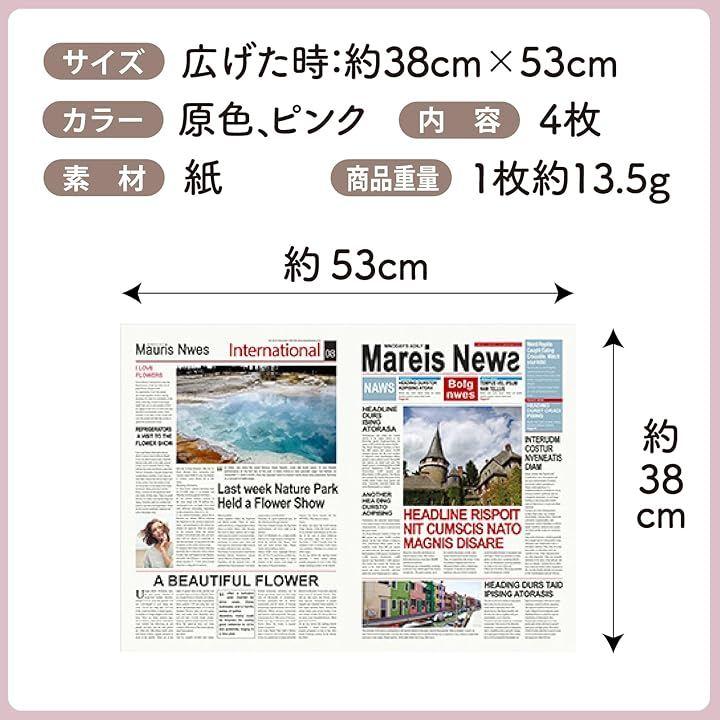 「サイズ」 広げた時:約38cmx53cm 「カラー」 原色、ピンク 「素材」 紙 「商品重量」 1枚約13.5g 「内容」 4枚