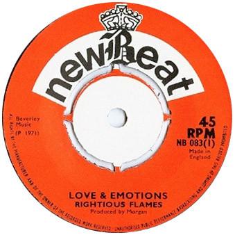 ・アーティストRighteous Flames・タイトルLove And Emotions・レーベル・型番newBeat NB083・フォーマット7インチレコード・コンディション(盤)可 (VG)・コンディション(ジャケット)