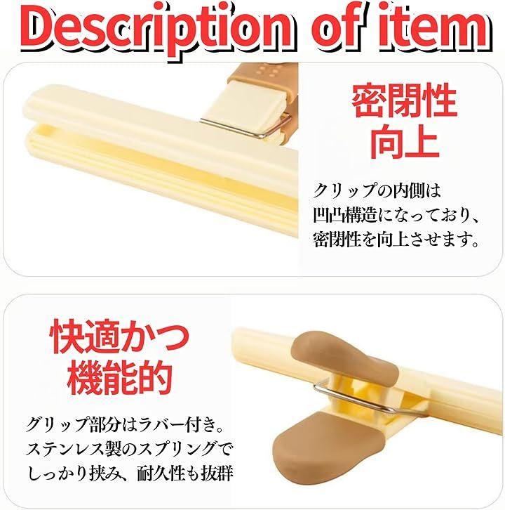 食品の鮮度を長期間保つ耐久性 このシールクリップは、厚くて強い素材と大きなバネの張力を持ち、食品の新鮮さを保つのに最適です。