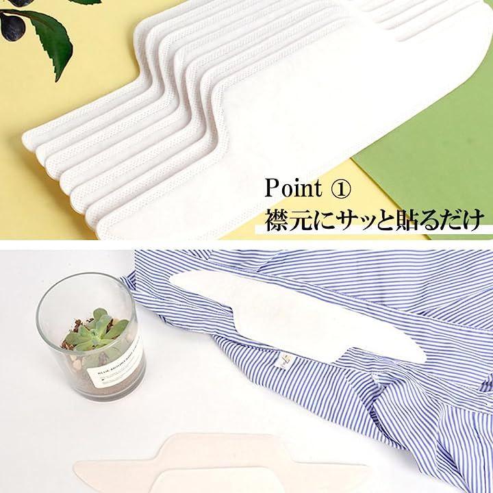 大きめのシートでYシャツの襟元に貼るだけで首周りの皮脂汚れを防止し、汗もたっぷり吸収。