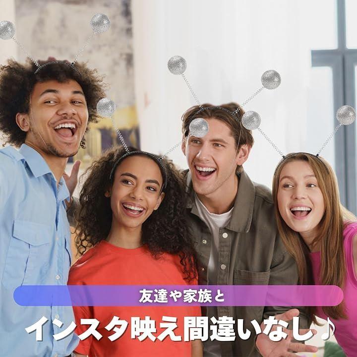 キラキラ輝く2つのポンポンが付いたエイリアン風ヘッドバンドは、ユニークなデザインでパーティーやイベントの主役になれるアイテムです。