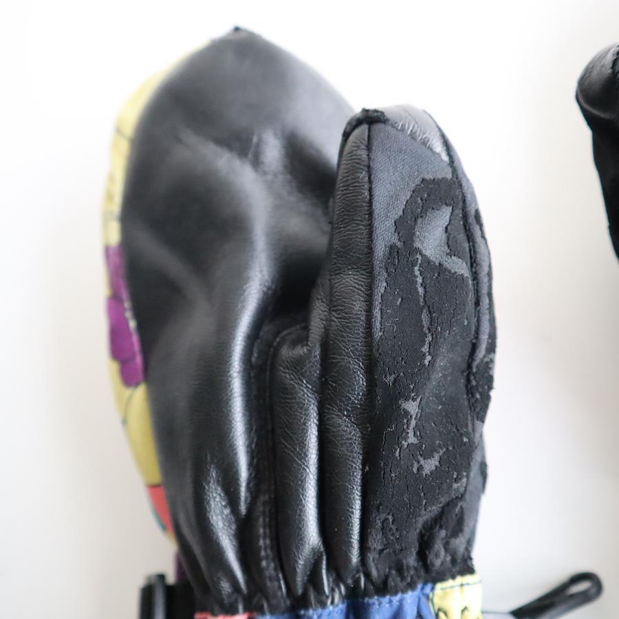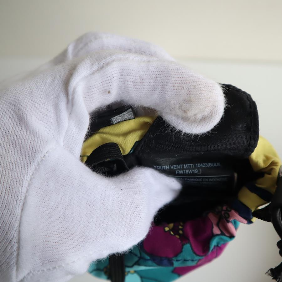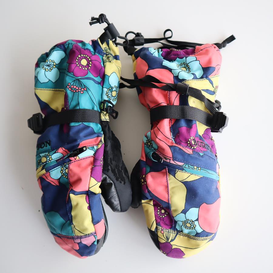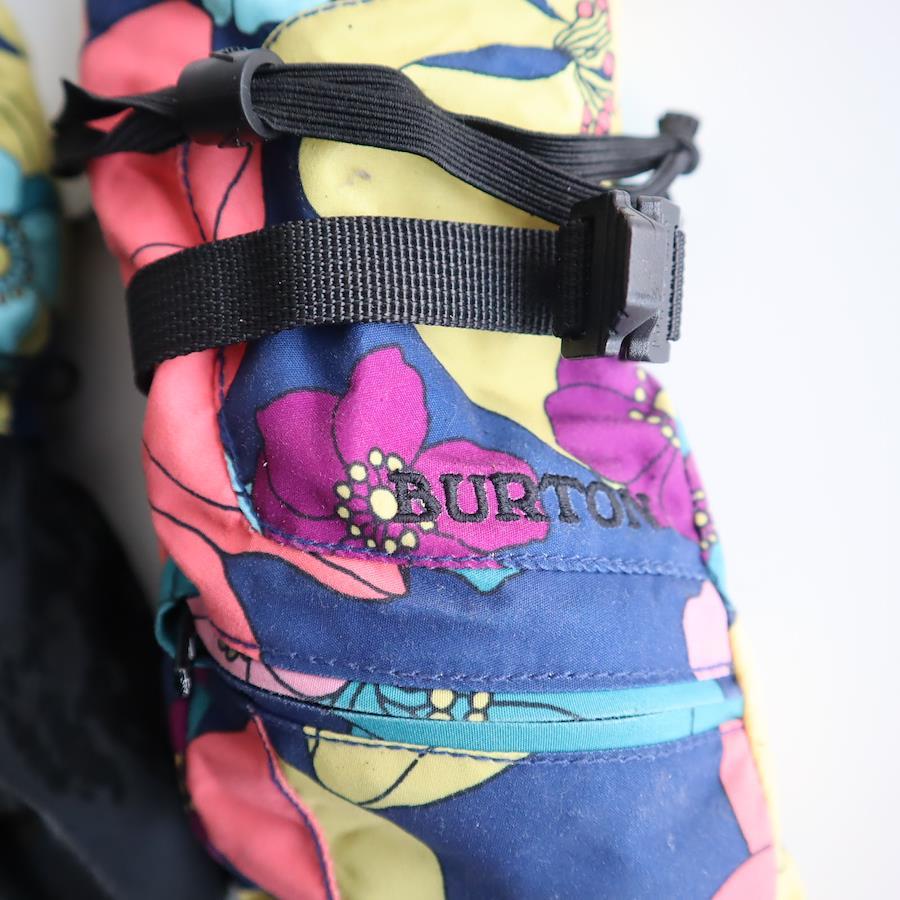 【詳細】■ 商品名:BURTON YOUTH VENT MITT(ジュニアミトン)■ ブランド:BURTON(バートン)■ カラー:カラフル花柄■ サイズ:YOUTH M(子ども用)■ 状態:- 合皮部分に強い劣化(剥がれ・ひび割れ)あり- 親指・指先に摩耗あり- 表地に薄汚れあり- 使用感強め- 臭い:特になし■ 付属品:本体のみ■ 特徴:DRYRIDE、防水仕様、ストラップ・リーシュコード付き
