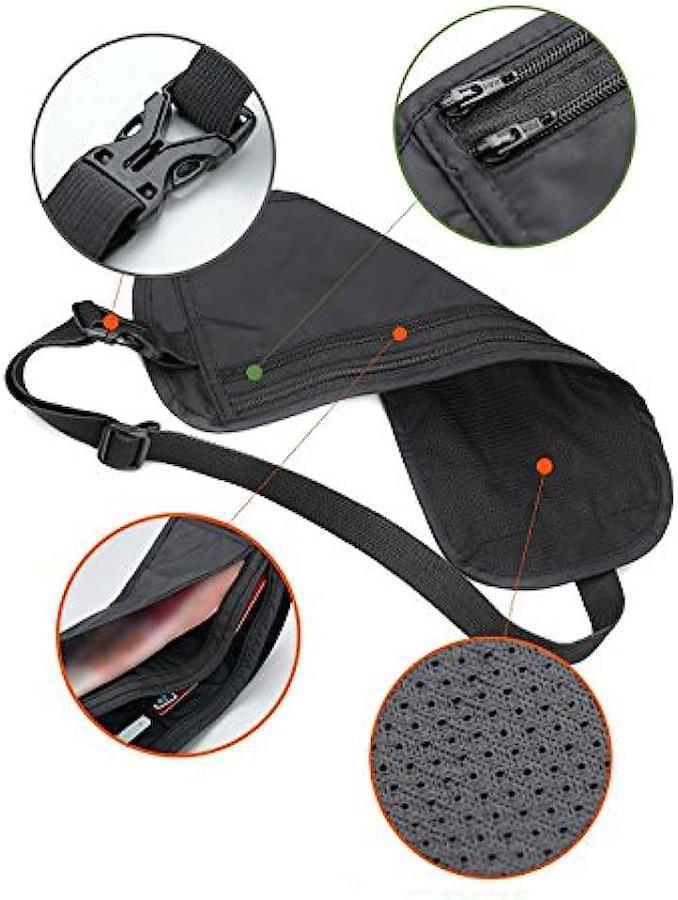 旅行の際に必要な貴重品やカード類等を紛失や盗難から守る、腰に巻くタイプの貴重品入れです。