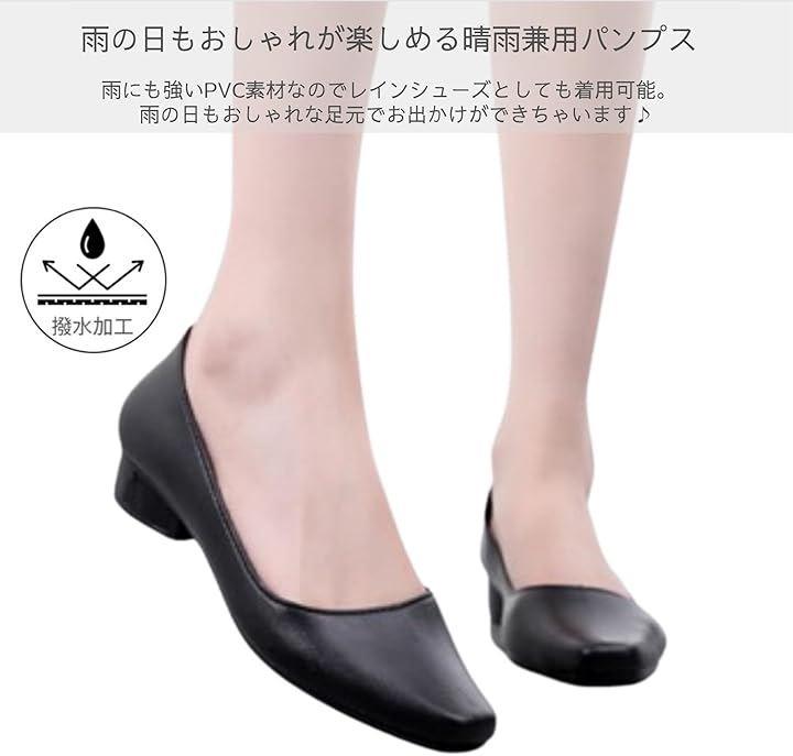 撥水加工が施され、雨に強い材質を採用してるので、レインシューズとしても使える晴雨兼用パンプス。