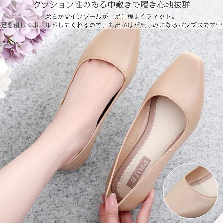 また、つま先部分に丸みがあるので女性らしいデザインで柔らかく優しい印象のパンプスで、普段使いはもちろん、フォーマルからカジュアル、ビジネススタイル等様々なシチュエーションでのファッションコーデが楽しめます。