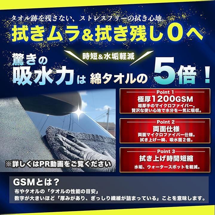 「1200GSM 両面厚手仕様」 超極細マイクロファイバーを贅沢に使用した両面厚手クロス。