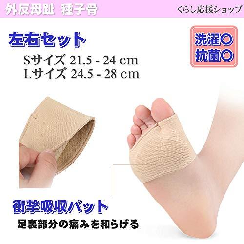 【足裏保護、痛み軽減】足裏保護パッドは足の痛みを緩和します、足先に体重や地面からの衝撃をしっかり吸収し、体重が均等に調整し、つま先の足裏のウオノメやタコの軽減に活用できます。足裏のバランスを良くすることで、膝・腰への負担をサポートします。 【足裏保護 サポーター】整骨院院長の推奨商品です! 左右1組セット / 男女兼用 / Color : ベージュ ・Size : S / 21~24 cm L / 24~28 cm ・ 素材 : ナイロン生地、シリコン 【水洗い、繰り返し使用可能】個人の衛生健康を考えて、使用後洗ってください、汚れたら清潔した後繰り返し使うことができます。ご注意:洗浄後に直接日光を当たらないように陰干ししてください。 【簡単に装着できます】パッドが足の裏側にあたるようにして、足の先に履くだけで簡単に装着できます。伸縮性に優れておりズレにくい設計のサポーターです。サポーターは清潔に保って使用してください。 【適応対象】足の親指が内側に曲がっている、ウオノメやタコ、親指の付け根が痛い方、足底筋膜炎、中足骨骨頭痛、外反母趾、内反母趾、カルス、水ぶくれ、魚の目、種子骨などの痛みがある方に適用します。ハイヒールを履いたり、長時間歩いたり、足の痛みを和らげる必要の方にもお勧めです。