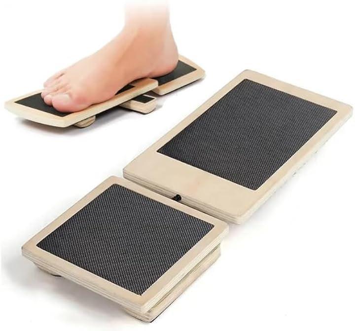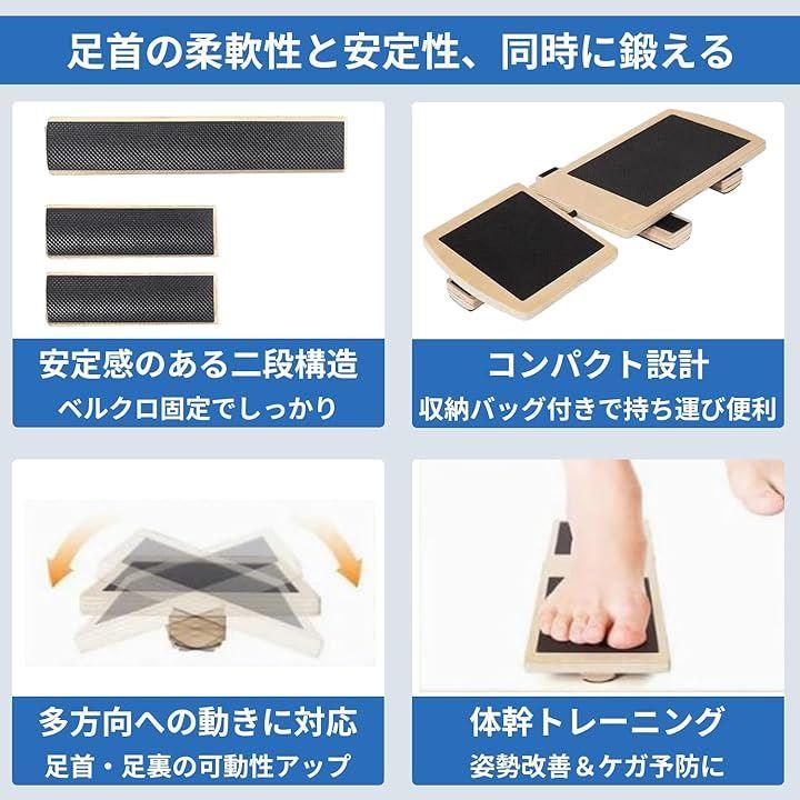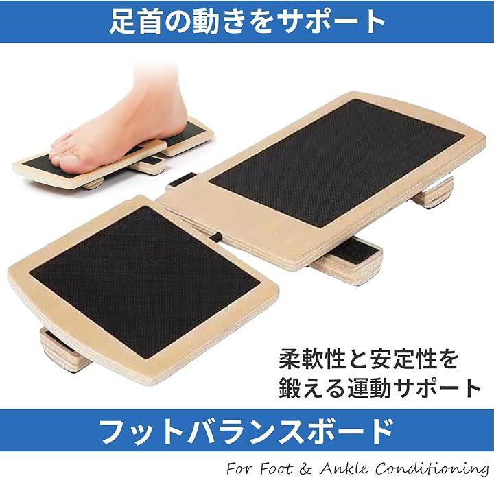 「柔軟性アップ&体幹トレーニング」不安定な板の上で姿勢を保つことで、足首やふくらはぎの柔軟性を高めつつ、体幹の安定性を向上。