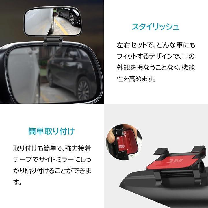 360度調整可能なデザインで、サイドミラーだけでは見えない死角をカバーします。