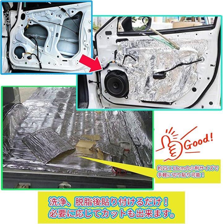 遮熱マット素材は柔らかく、ハサミなどで加工しやすいため、ドア内部やダッシュボード裏など多様な場所の遮音・断熱対策に活用できます。
