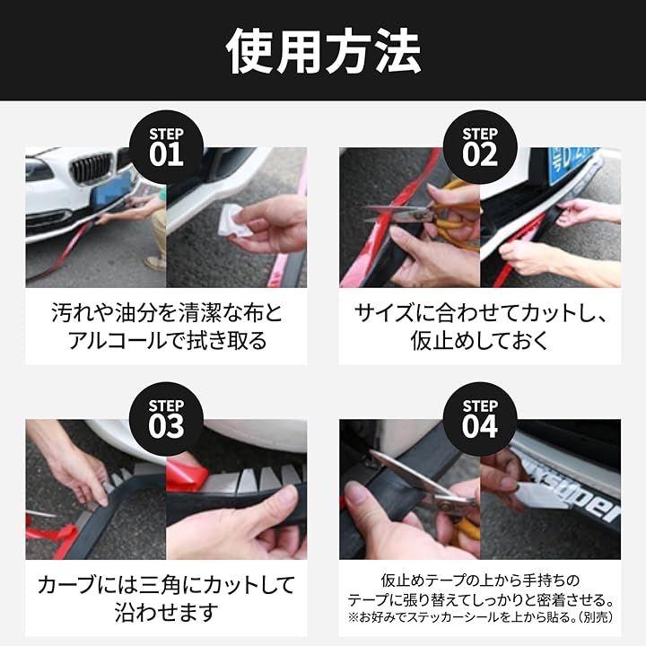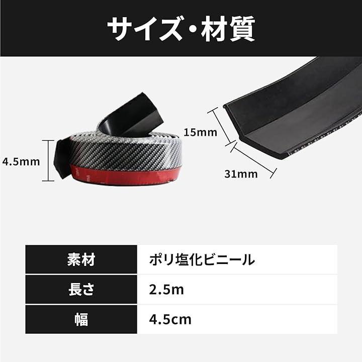 長さ2.5mの汎用リップスポイラーは、カーメンテ・エアロ用のブラックカーボン調アンダーガードとして使用でき、カーボン調デザインがシンプルでカッコよく、スポーツ感と高級感を漂わせます。