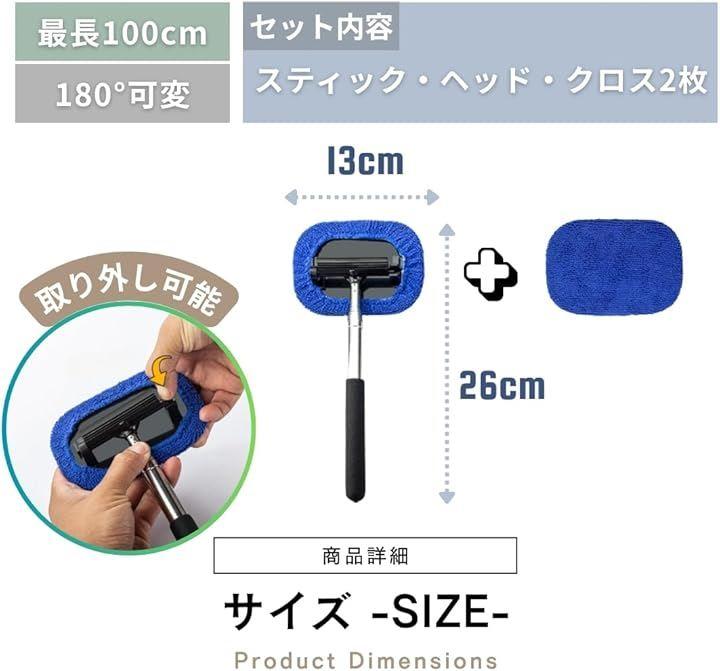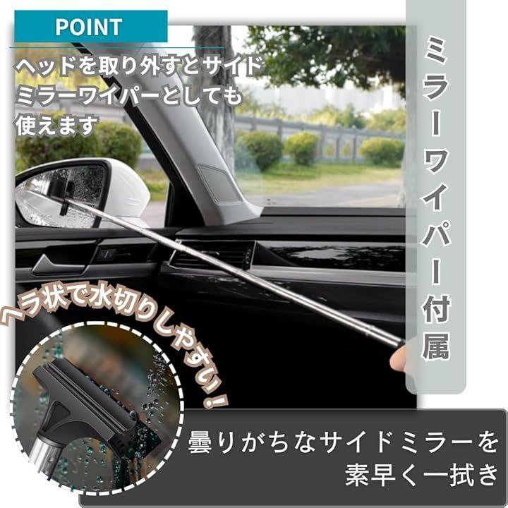 「ミラーワイパー付属」ヘッドを取り外すとサイドミラーワイパーとしても使えます。