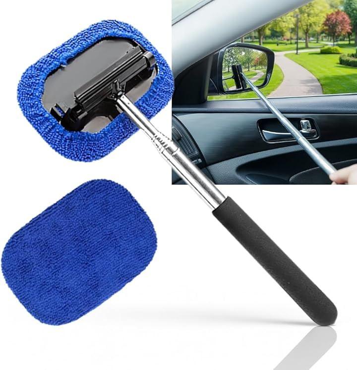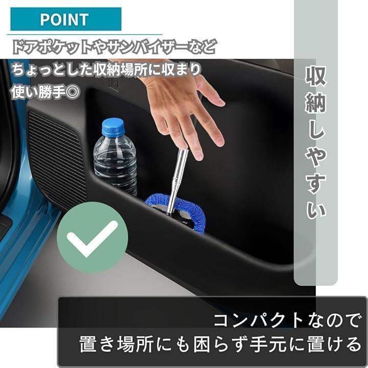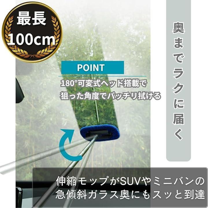 「奥までラクに届く」最長100cmまで伸びる伸縮モップがSUVやミニバンの急傾斜ガラス奥にもスッと到達。