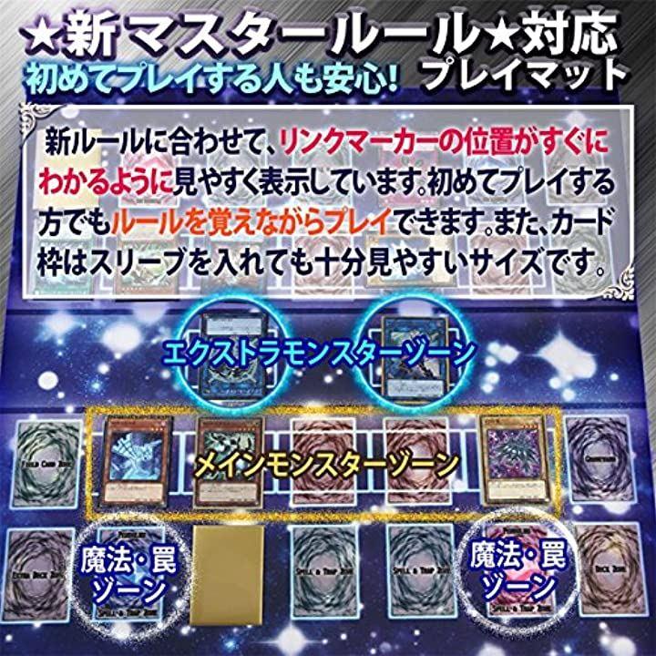 初めてプレイする初心者の方もこれまでプレイしていた方も、ルールやカード位置を覚えながら安心してデュエルを楽しめます友達とカードやリンクマーカーの位置で喧嘩にならないよう、プレイマットを使ってカード位置をしっかり決めておきましょう。