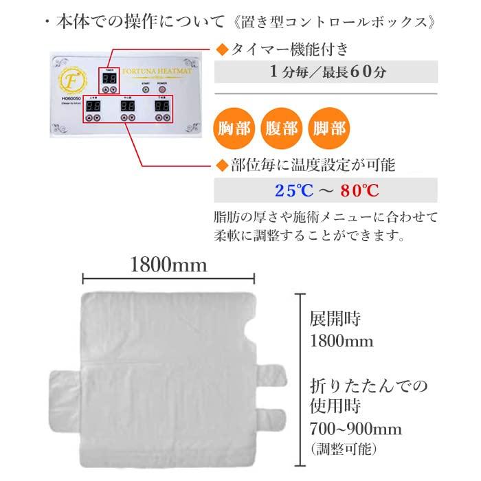3営業日以内に発送≪新品未開封品≫:【サイズ】長さ:1800mm × 幅:1800mm【重さ】約6kg【タイマー】最長60分【温度】25℃ー80℃。5℃刻み、3部位毎に個別設定可能。【仕様】消費電力:380W 電圧:100V 50-60hz