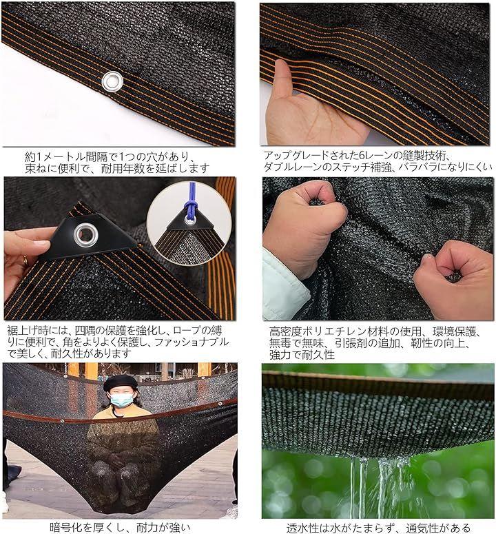 サンシェードネットの四隅には三角形の保護コーナーがあり、1mごとに両側にグロメットがあります。