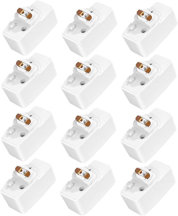 1、 包装:12個入り、色:白い(アイボリーホワイト)、サイズ:高さ2.8cmx幅2.4cmx全長5.2cm、材質:プラスチック+銅、重量:24g/1個、適合負荷: 120V/60Hz専用600W(6A)まで、。