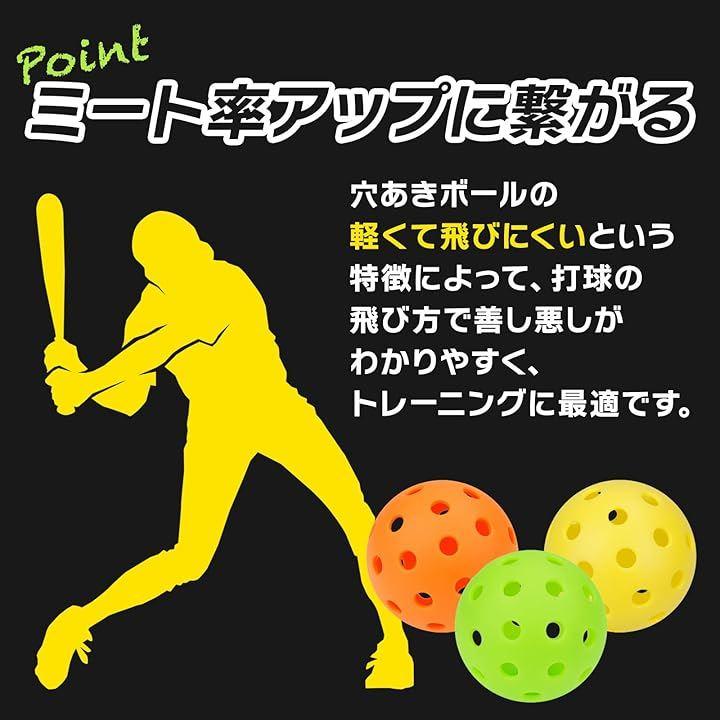 室内でも屋外でも使える。72mm 野球トレーニング用 穴あきボール 試合用ボールと同じ直径72mmで、実戦に近い感覚を再現。