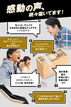 1万円札と同じサイズでクリーム色の無地の用紙です。1束は100枚です。 帯は銀行で使用している本物です。 (金融機関の文字の位置は札束ごとにバラバラとなっております。) ※上記写真は、見本のため上に本物の1万円札を挟んでいます。ご使用時には、ご自分で本物の1万円札を入れてください。 ●サイズ 一万円札と同じ(縦76mm×横160mm) ●重さ 約93g●えびす屋オリジナルロゴ付き!