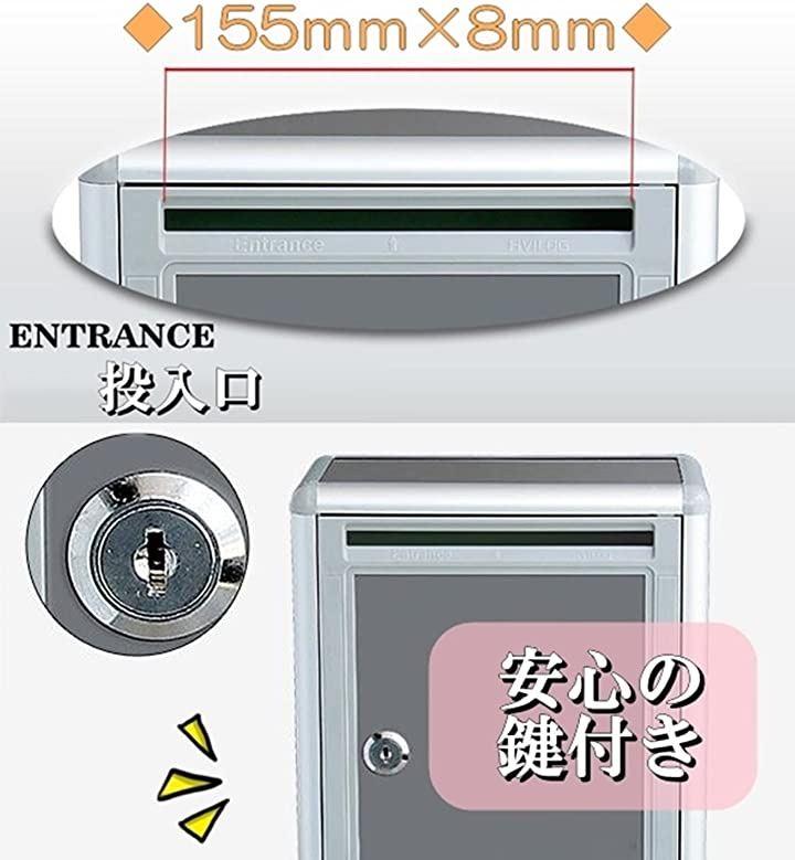 ・下部に内部確認用小窓 投入口:約15.5cmx0.8cm *小型につきA4サイズの郵便物は入りません *直接雨の当るような屋外での使用はお控えください。