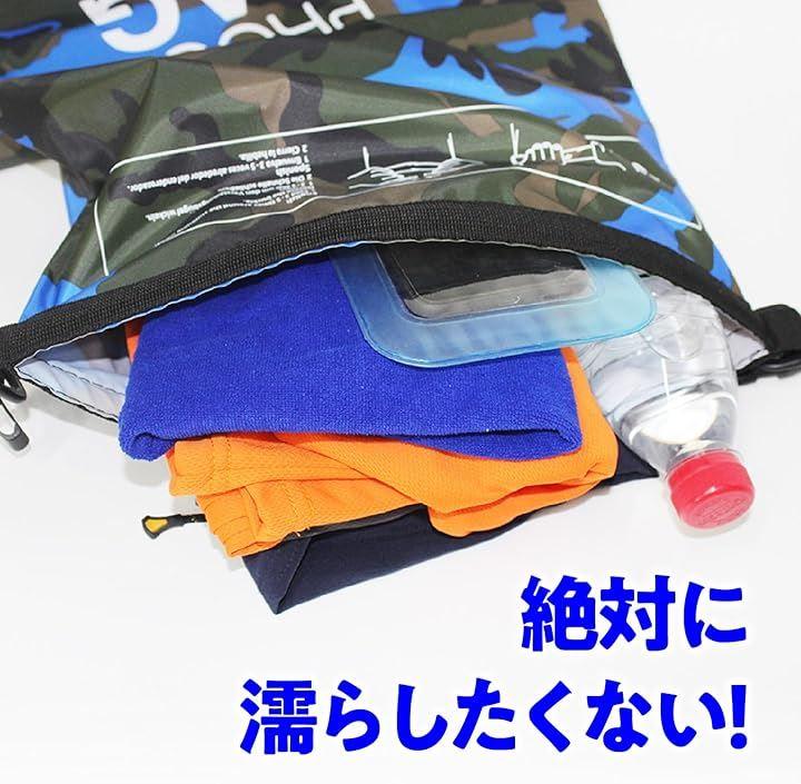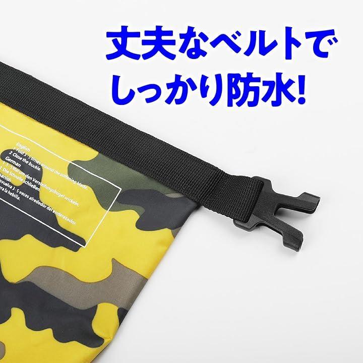 口を数回巻いてバックルで留めるだけでしっかり密閉でき、雨や波しぶき、砂埃などからスマホや衣類、貴重品をしっかり守ります。