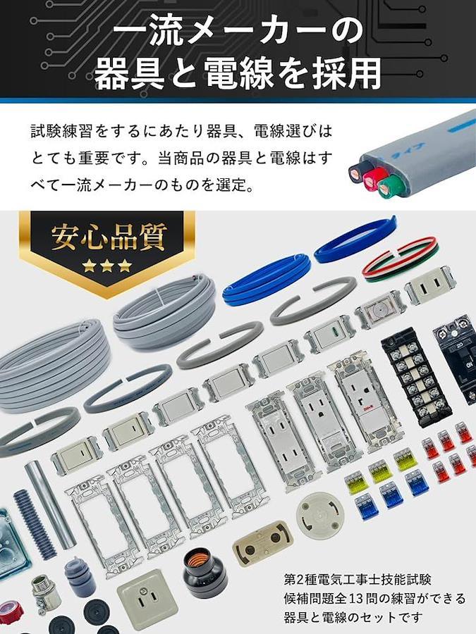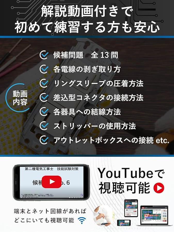 2024年、第二種電気工事士 技能試験の候補問題全13問をそれぞれ1回ずつ練習ができる試験対策セットです。